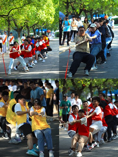 比赛在热烈的期待中拉开战幕。竞赛双方站在裁判的左右两端,队员们手中紧攥着有些刺手的黄麻粗绳,严阵以待。裁判一声令下,双方队员都分别降低了重心,各个都向后倒去,双脚踏实了地面,瞅准瞬间即逝的时机,拼命将对手拉向自己的“营地”。赛场气氛紧张而激烈。每一名队员都在为了集体荣誉铆足了劲。观战同学的呐喊助威,候赛运动员们的摩拳擦掌,比赛进行中的同学们的嘹亮整齐的“1—2—3”口号,使得操场上的温度节节上升。经过激烈比拼,22机电一班与22汽车服务工程班会师决赛。最终,在经过一番激烈的耐力与体力较量之后,22汽车服务工程班获得本次拔河比赛冠军。